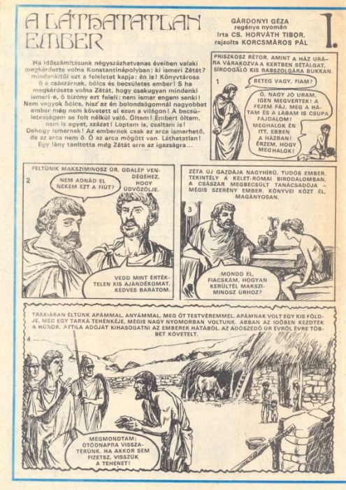 Kiadó: Ifjúsági Lapkiadó Vállalat|- Zéta – művelt, trák származású görög szolga|- Priszkosz – római rétor, Zéta gazdája|- Emőke – hun leányzó, Zéta szerelme|- Dsidsia – szolgálólány a hun táborban|- Attila – hunok vezére|- Rika királyné – Attila felesége|- Csáth